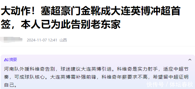 而在代表河南队踢结束与北京国安的终末一轮中超联赛后,科维奇也照旧认真与河南队告别,踏上了归国的阶梯。从咫尺的情况来看,下个赛季科维奇笃定不会再与河南队续约,届时规复解放身的他,很有可能将加盟大连英博。
